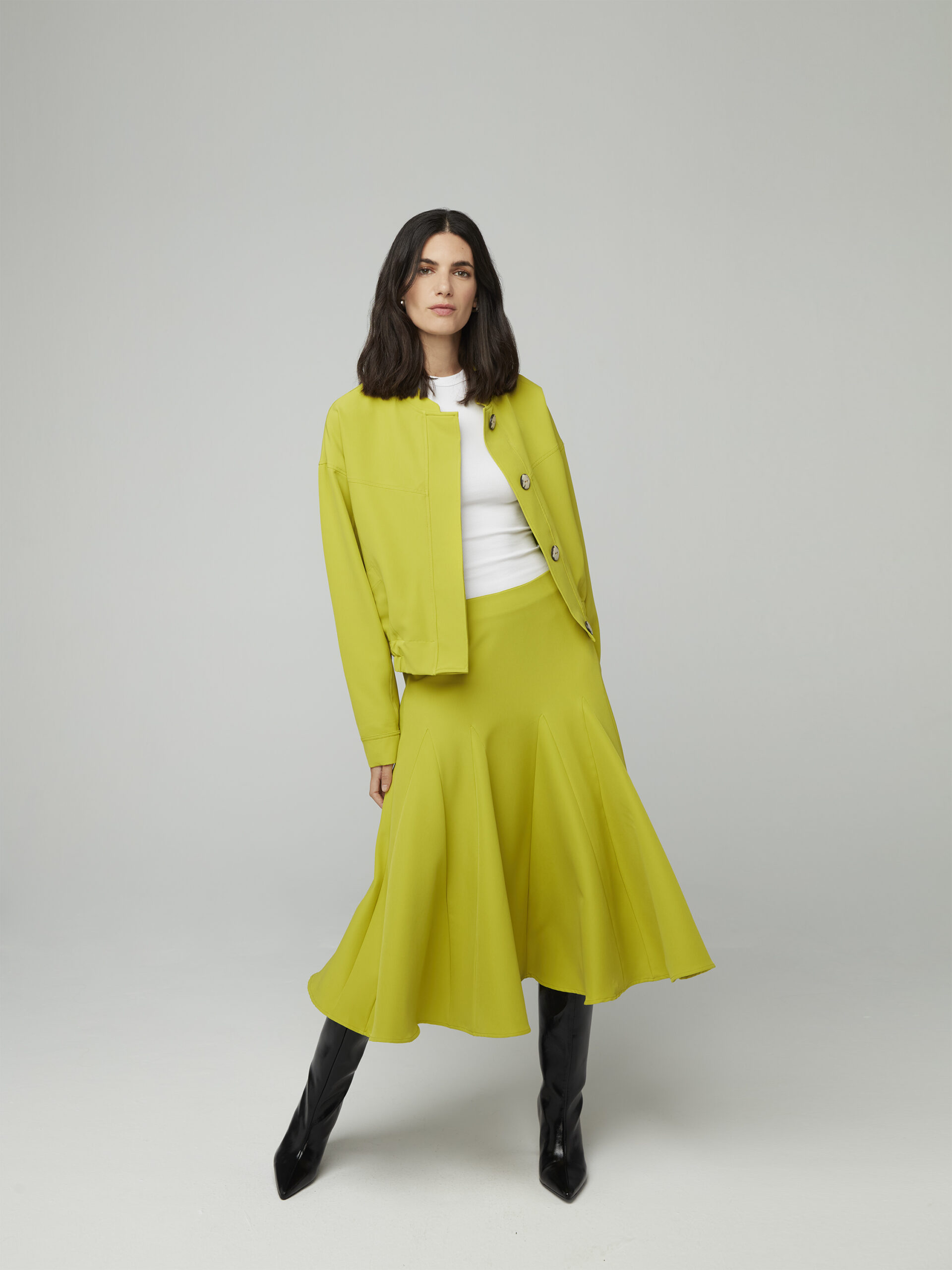 Su patrón con godets aportan vuelo y movimiento convirtiéndola en una prenda sumamente femenina.