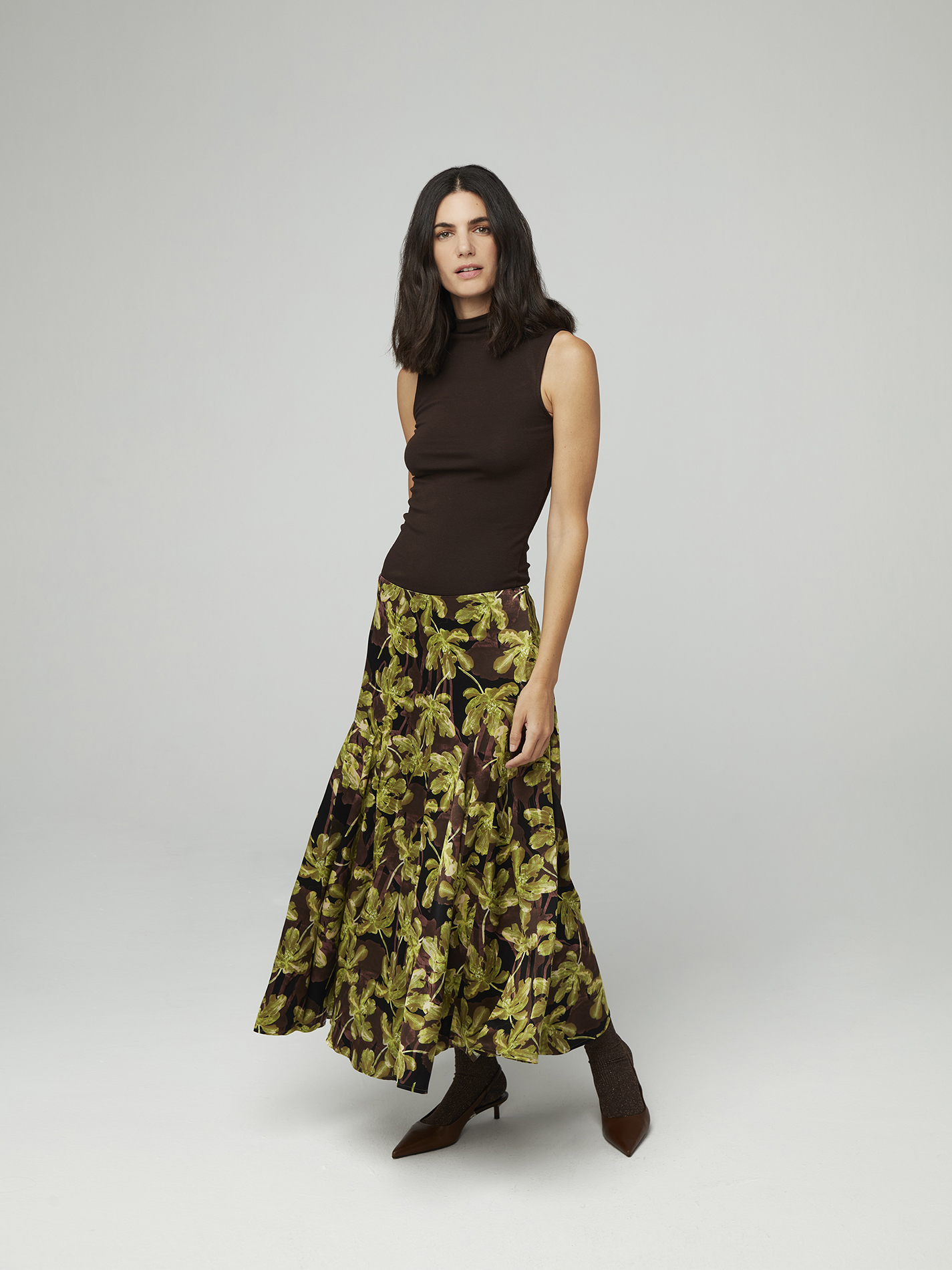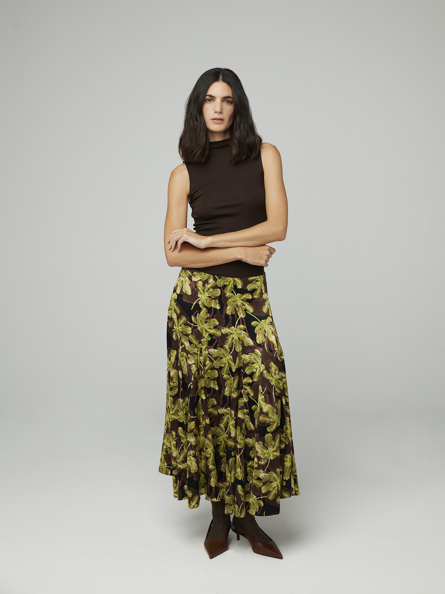 Falda midi de inspiración vintage , con diseño evasé y tiro medio.